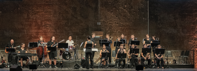 (Trompeten, Posaunen, Saxophone) oder in der Rhythmusgruppe (Bass, Klavier, Schlagzeug,